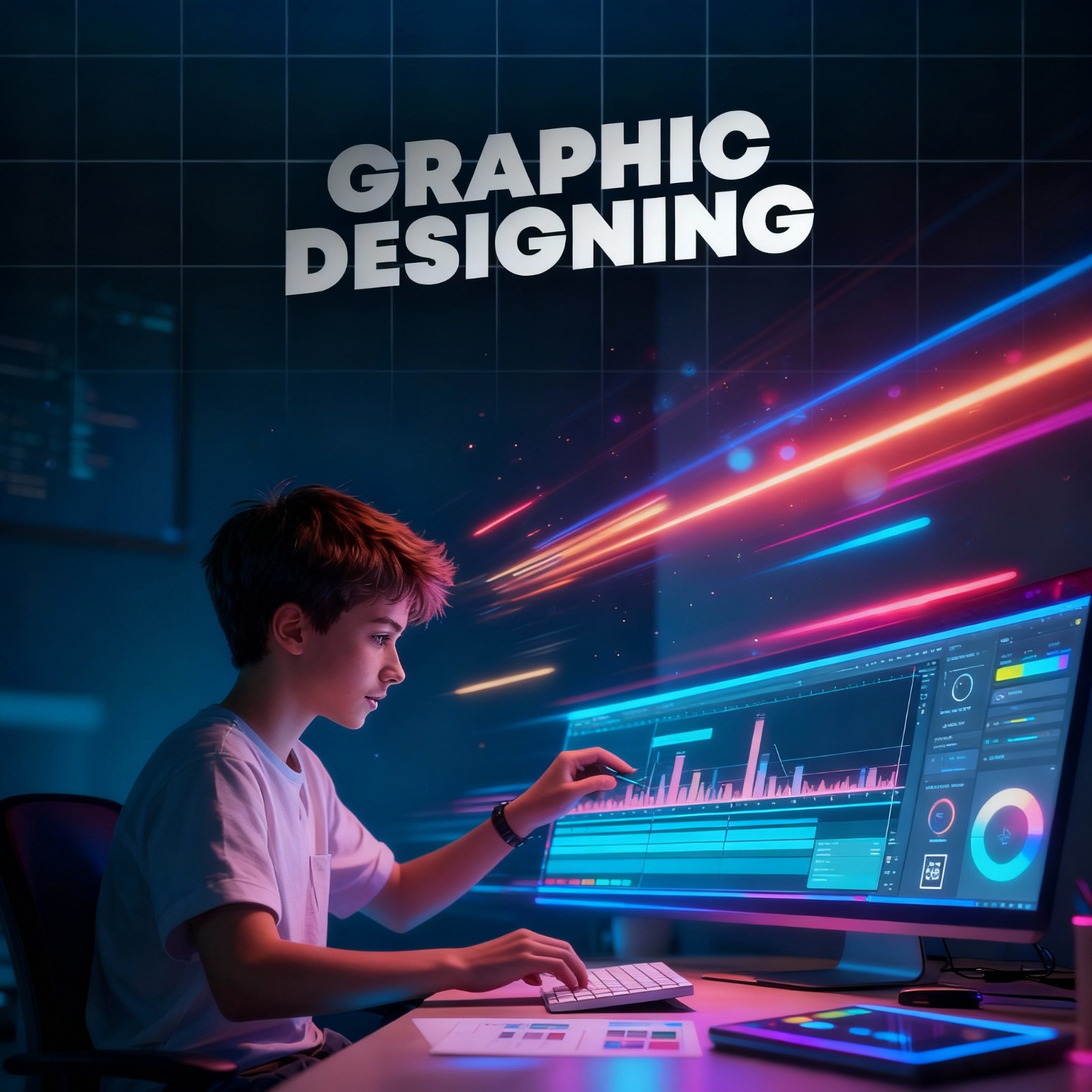 This comprehensive graphics course blends theory with real-world application, allowing students to explore the fundamentals of color theory, typography, and layout while mastering professional design tools like Adobe Photoshop, Illustrator, and InDesign. Through interactive sessions and hands-on projects, students gain practical experience in branding, digital design, and visual storytelling.
